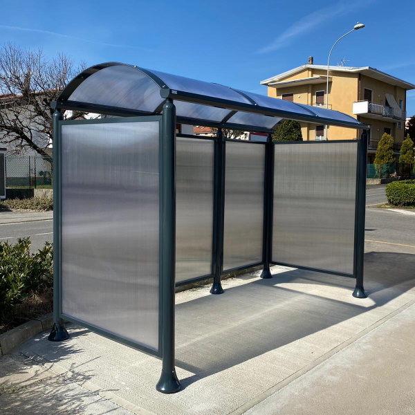€ 5.300,00 € 6.466,00 (incl. VAT)Shelter realized in galvanized and powder coated steel, roof in alveolar polycarbonate and back and side walls in compact polycarbonate.