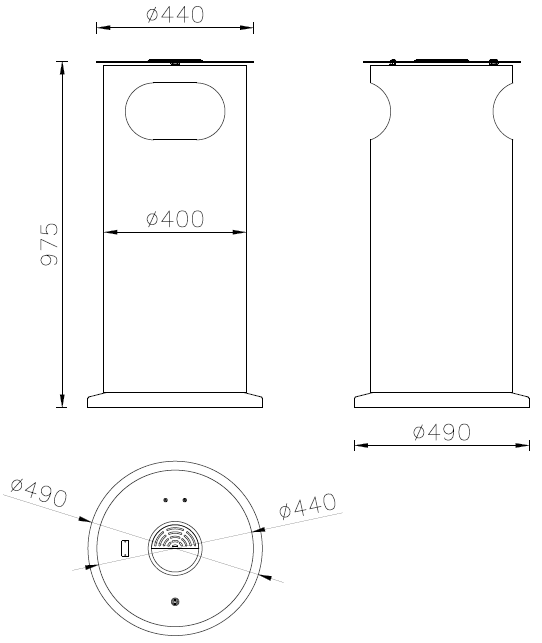 | Dimensions | Structure Ø 400 mm – Concrete base Ø 500 mm – Steel base Ø 490 mm |