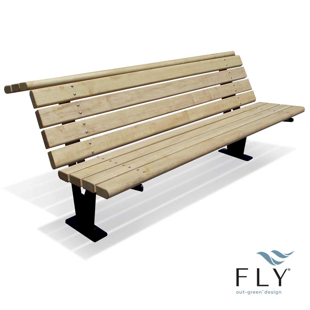 Bench made by galvanized and powder coated steel structure in different RAL colours with wooden seat in pinewood or hardwood slats.