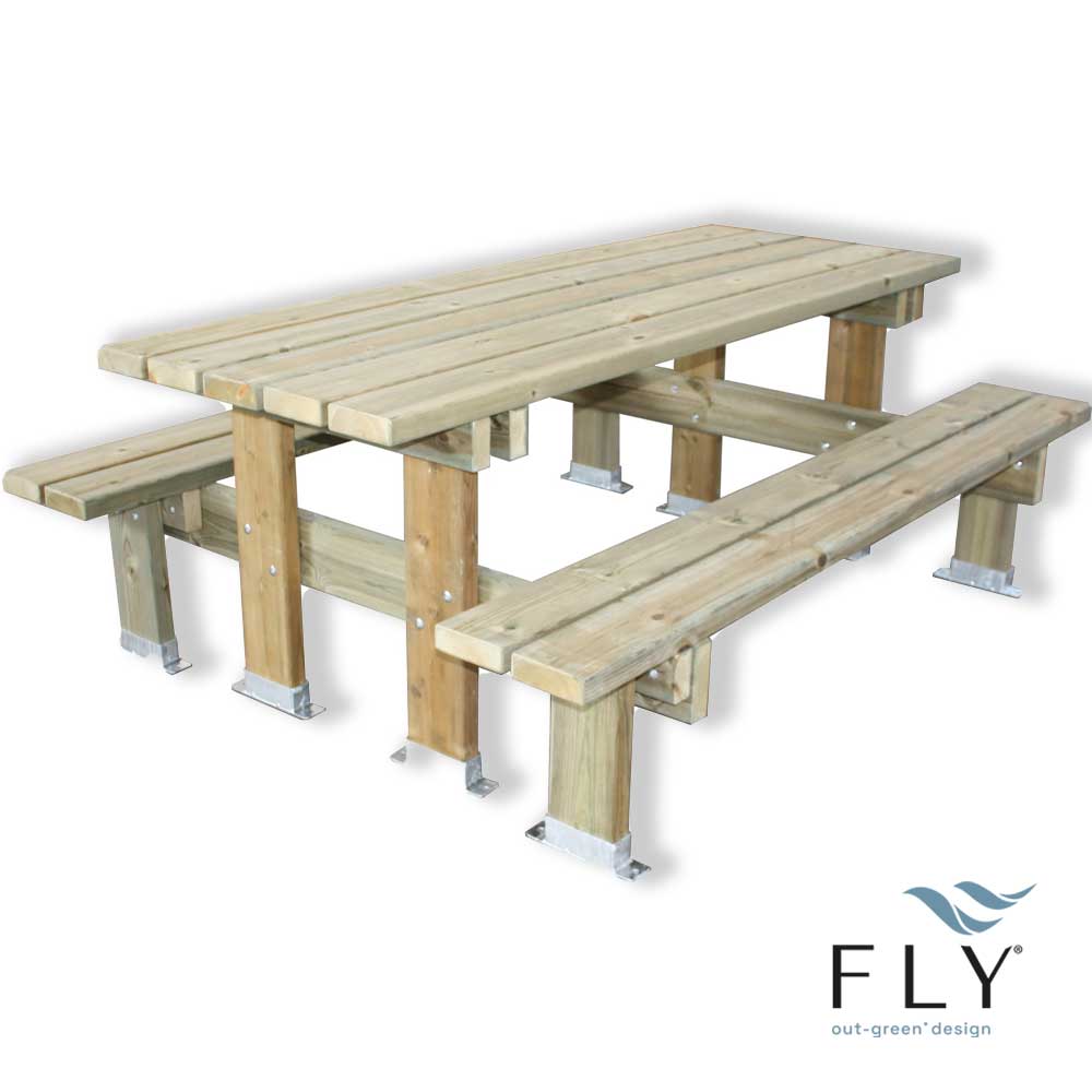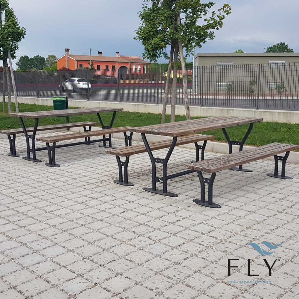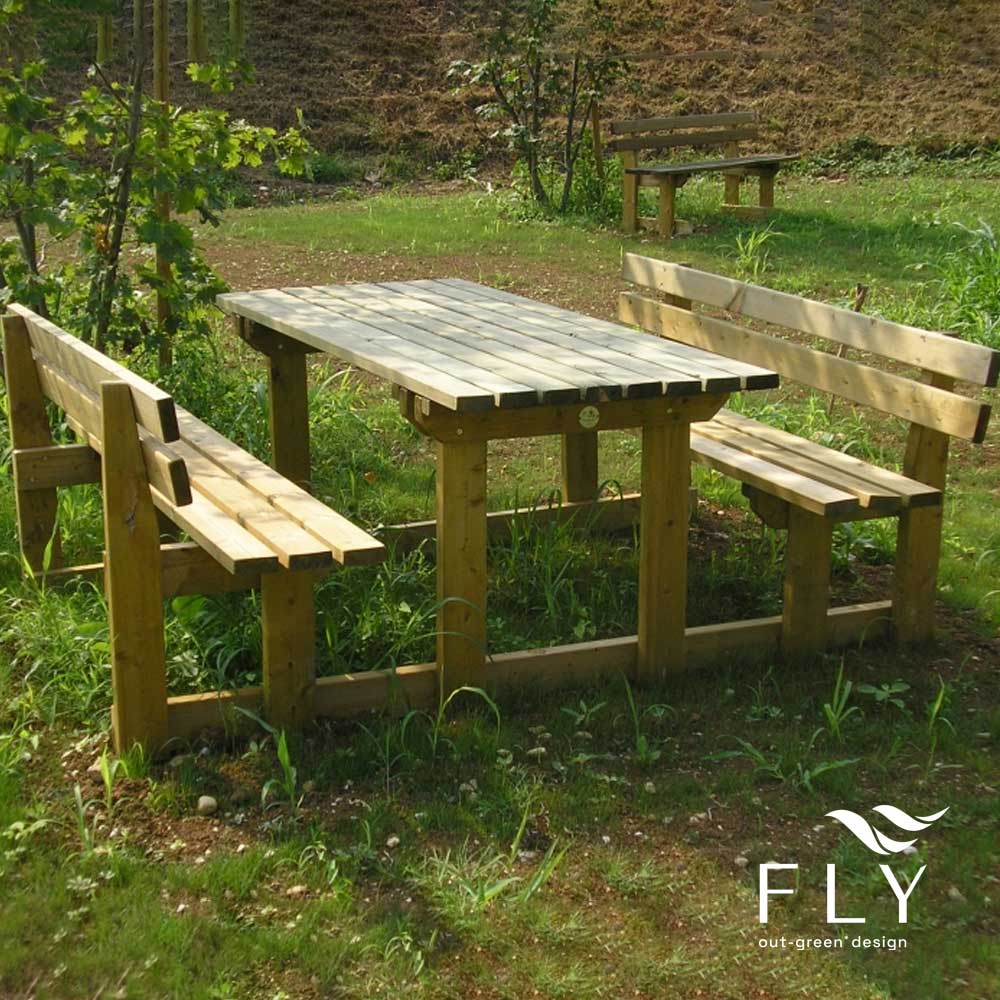 Pic-nic set realized in galvanized and powder coated steel, with wooden seat.