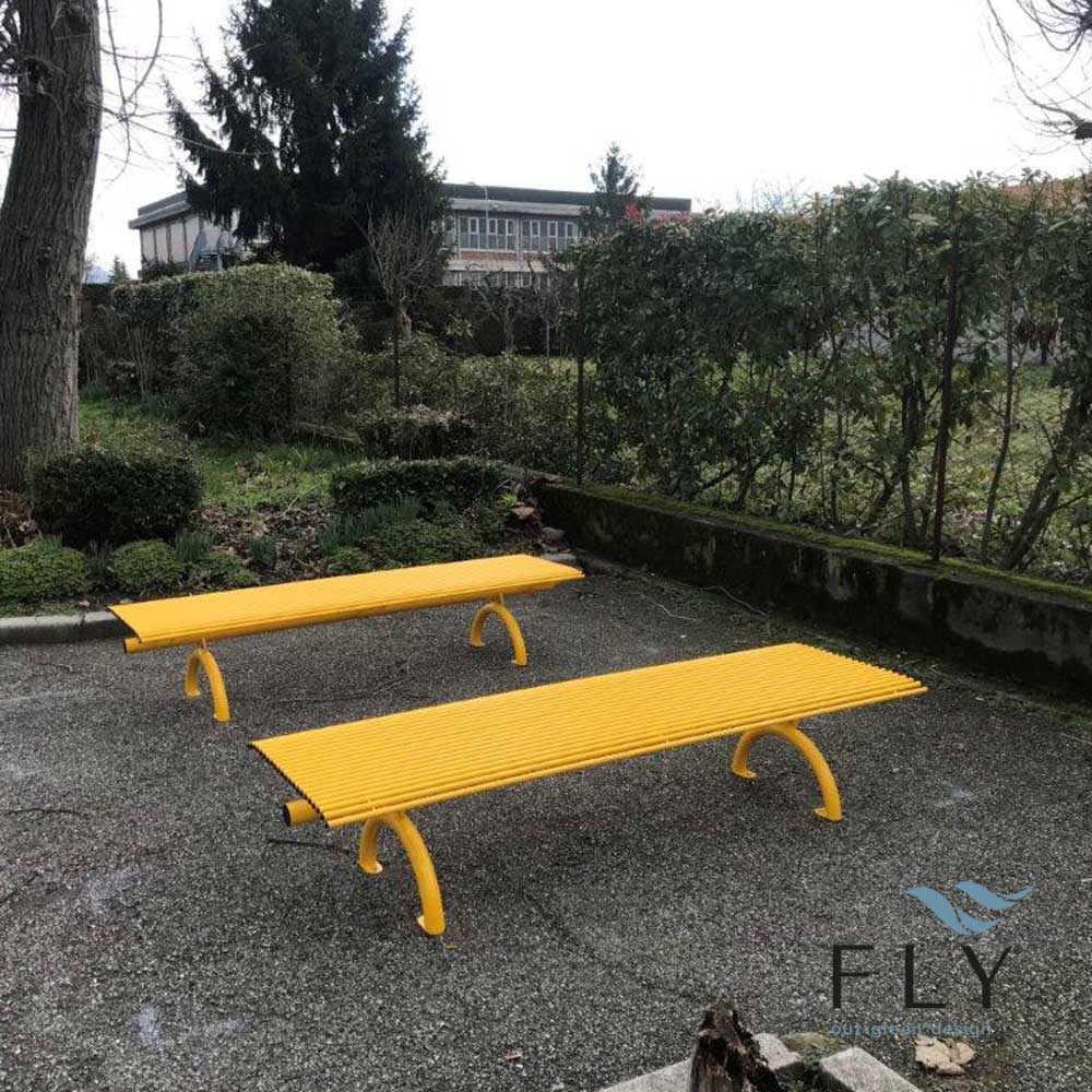 Bench made entirely by galvanized and powder coated steel structure in different RAL colours.