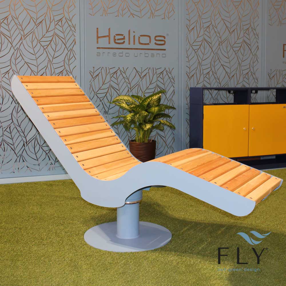 Sunbed made of galvanized and powder coating steel with pine wood or hardwood slats. Ground anchoring with bolts.