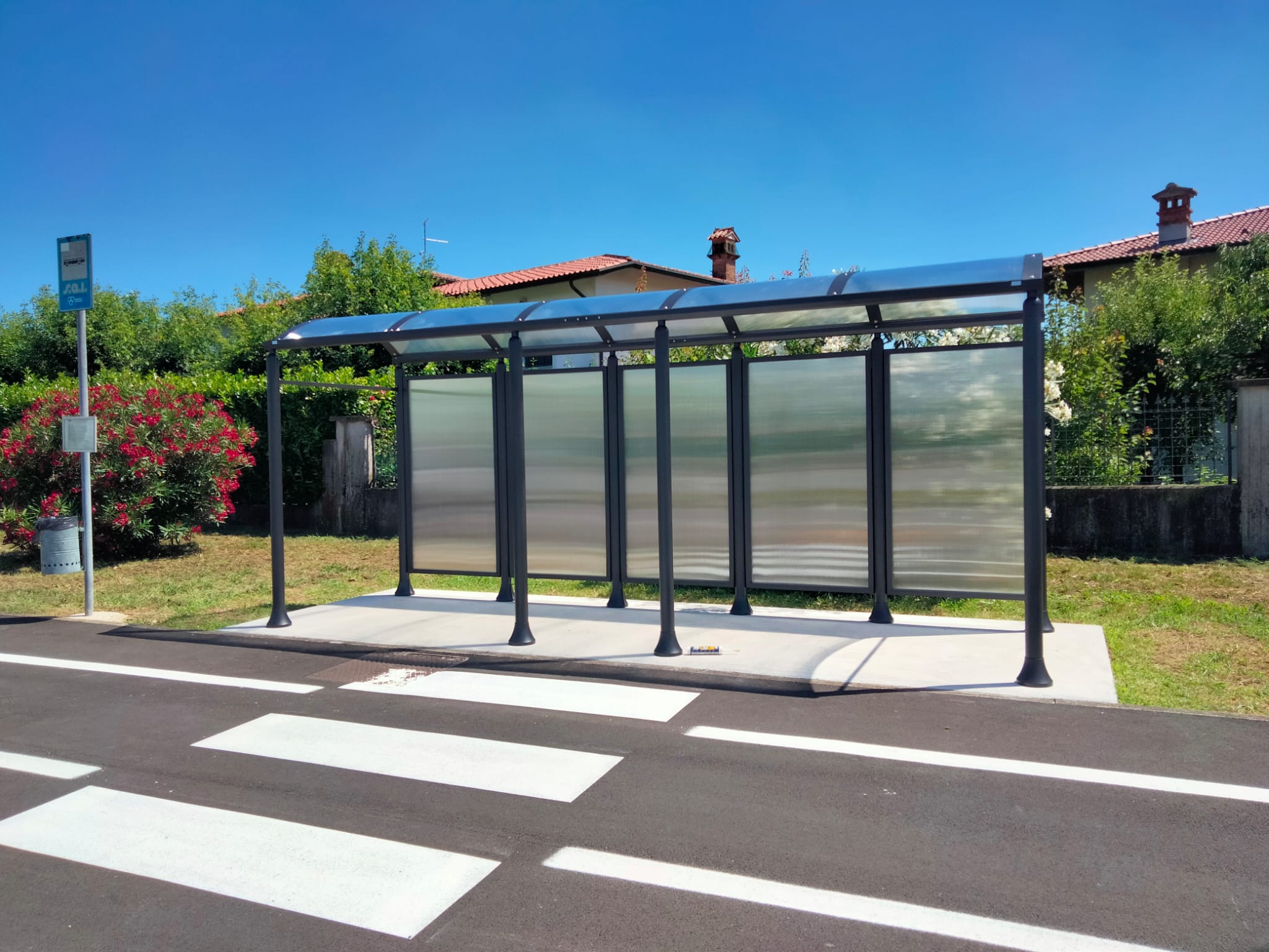 Transit Bus shelter compact can be reaalized in different lengths (3-4-5 modules) or with side walls.