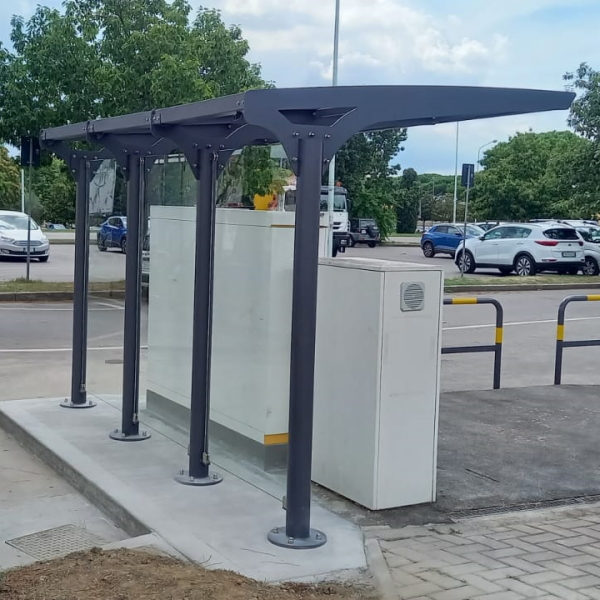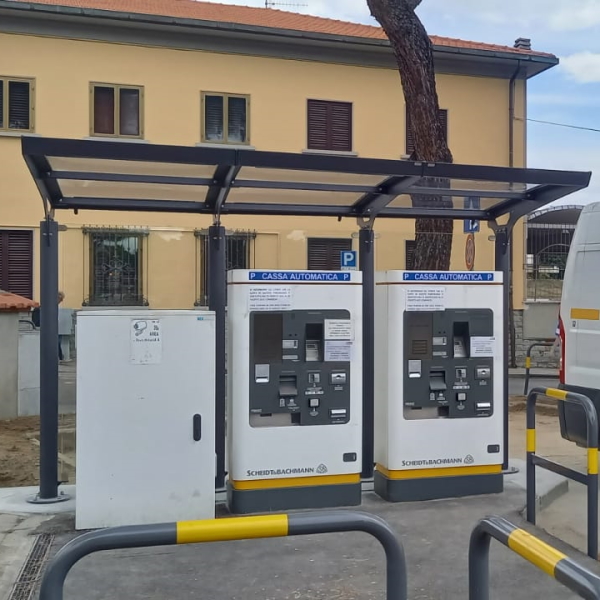 E’ stata posizionata una pensilina Pit Stop realizzata su misura per il riparo delle casse automatiche del parcheggio.