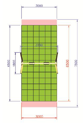 Dimensioni: 315 x 180 x h 215 cm (h 200 sotto la trave)