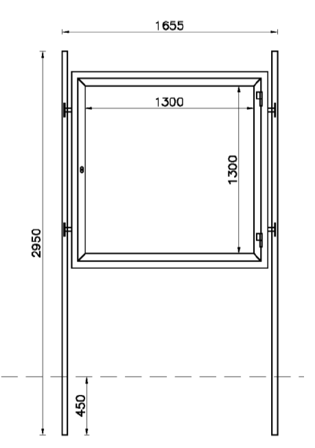 Bacheca Asti con anta in vetro, dimensioni espositive di 1300×1300 mm. Prodotto da inghisare al terreno e realizzato in acciaio zincato e verniciato.