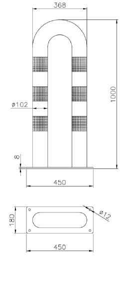 Dissuasore Berlino realizzato in tubolare di acciaio Ø 80 mm. Prodotto da inghisare nella versione con o senza anelli.