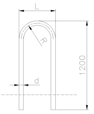 Barriera Ø 48 mm, dimensioni 80 x 120 cm, a forma di U rovesciato, senza traverso di collegamento. La barriera viene fornita da inghisare.