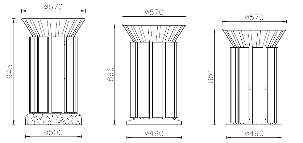 Cestino Corona Legno con base in cemento può essere fornito anche senza doghe in legno.