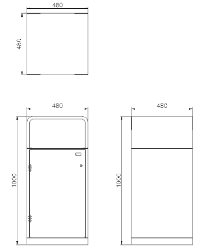 Cestino Cubo per la raccolta differenziata da 100 Lt. L’anta frontale è dotata di cerniere e serratura con chiave universale. Completo di contenitore interno estraibile in lamiera zincata. Tutte le parti metalliche sono zincate e verniciate a polveri epossidiche in varie colorazioni RAL. Predisposto per il tassellamento al suolo. La viteria è in acciaio inox.