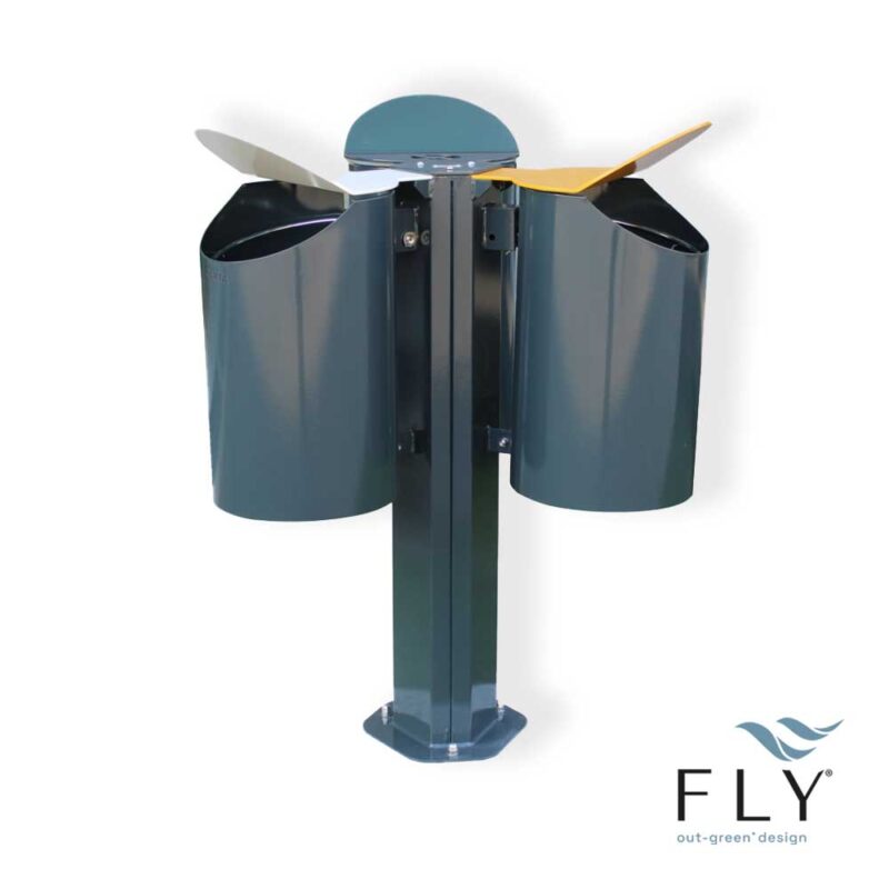 Cestino per la raccolta differenziata con 2 o 3 contenitori, completo di coperchi con posacenere e supporto da tassellare.