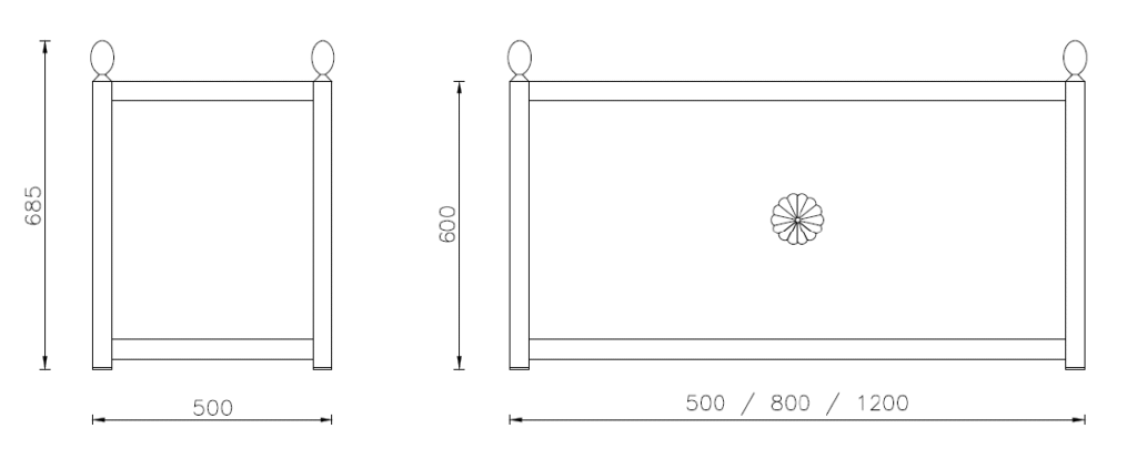 Fioriera Steno 500x500x600 mm viene realizzata anche con dimensione 1200x500x600 mm o 800x500x600 mm.