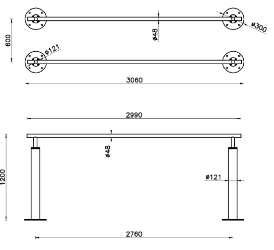 Parallele da esterno per il fitness, codice GHF008. Struttura composta da supporti e traversi in tubolare in acciaio zincato e verniciato. Su richiesta può essere fornita un’imbottitura sulle traverse (come da immagine). Completa di piastre basi decorative e supporto prolungato per il fissaggio tramite inghisaggio.
