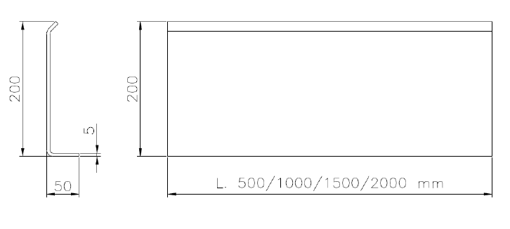 Protezione modulare – guide portoni L 1000 mm su richiesta può essere realizzata anche L 500, L 1500 e L 2000 mm.
