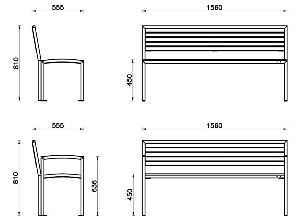 La panchina Carmen con schienale può essere realizzata anche senza schienale.