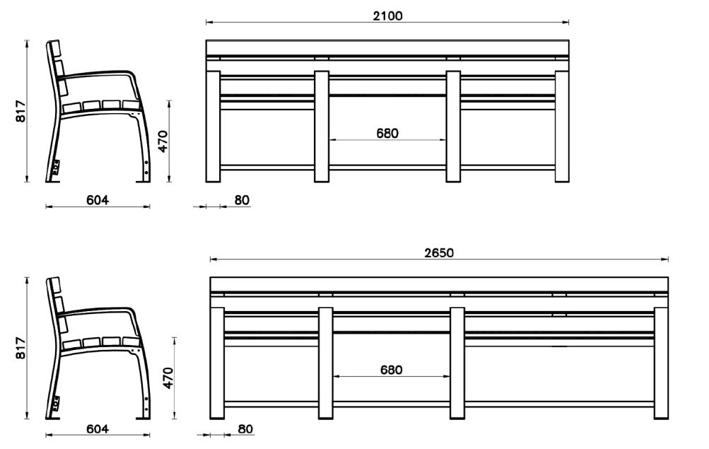 | Dimensioni | 2100×604 mm, 2650×604 mm |