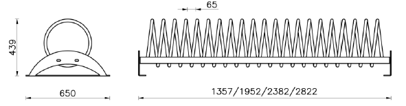 Portabici con rastrelliera a spirale che può essere utilizzata da un lato o su entrami i lati aumentando in questo modo il numero di posti a disposizione.