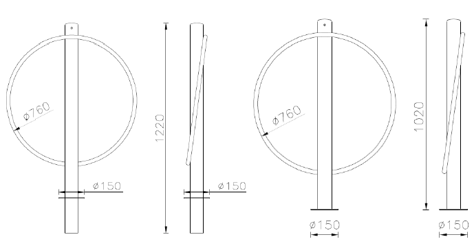 Portabici Fox 3 realizzato con un tubolare di acciaio con sovrastante sfera decorativa in acciaio. Al tubolare sono saldate due semicerchi in tubo tondo sagomato utili a sostenere ed assicurare la bicicletta. Alla base è saldata una piastra tonda, predisposta di fori per il fissaggio al suolo tramite tasselli ad espansione. In alternativa è possibile inghisare il prodotto. Tutte le parti metalliche sono zincate e verniciate a polveri poliestere termoindurenti secondo le diverse colorazioni RAL.