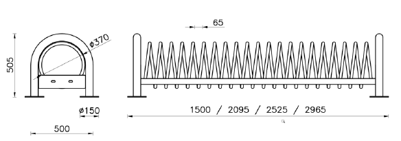 Portabici con rastrelliera a spirale che può essere utilizzata da un lato o su entrami i lati, aumentando in questo modo il numero di posti a disposizione.