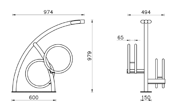 Portabici Strike da inghisare oppure da tassellare al suolo, a due posti, composto da disco porta ruota in tubolare e tubolare di sostegno per fissare il telaio della bici. Il fissaggio al suolo è previsto con piastra base con fori per il fissaggio tramite tasselli ad espansione. Struttura in acciaio zincato e verniciato a polveri nelle varie colorazioni RAL. Si può posare a batteria o singolarmente. Design di nuova generazione con poco ingombro che permette una facile pulizia del suolo, molto robusto e funzionale.