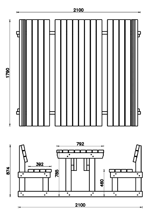 Set Madrier formato da un tavolo e due panche con schienale o senza schienale, di grande comodità e robustezza. Realizzato in pino impregnato in autoclave. Il piano del tavolo, le sedute e gli schienali sono in tavole distanziate tra loro, piallate e con spigoli arrotondati. L’assemblaggio è realizzato con viti passanti e dadi autobloccanti. Provvedendo periodicamente alla verifica di trazione dei fissaggi, è possibile ripristinare la perfetta stabilità della struttura anche dopo anni di utilizzo. E’ fornito preassemblato e molto usato molto nei luoghi di montagna, sui percorsi ciclopedonali e nei parchi naturalistici.