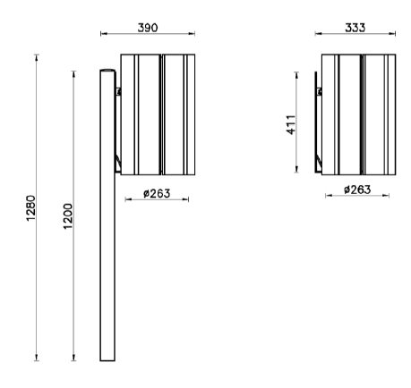 Cestino con struttura in acciaio zincato a caldo. Il paletto da inghisare è disponibile in acciaio o in legno di pino. In alternativa, è possibile fissarlo a muro.