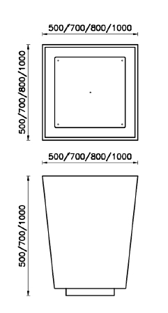 Fioriera Piramide Piramidale di dimensioni 500x500x500 mm, è realizzata da uno scatolato in lamiera tagliata al laser e piegata. È composta da uno scatolato in lamiera tagliata al laser e piegata. La parte superiore è ricavata dalla piega della lamiera e crea una cornice. La parte superiore è ottenuta piegando la lamiera e forma una cornice. Il fondo, anch’esso in lamiera, è saldato alle pareti e ha nella parte inferiore un telaio saldato fatto con piatto, che serve a sollevarlo da terra. Tutte le parti metalliche sono zincate e verniciate a polveri poliestere termoindurenti secondo le colorazioni RAL. Dotata di fori di scolo per l’eliminazione dell’eccesso d’acqua.