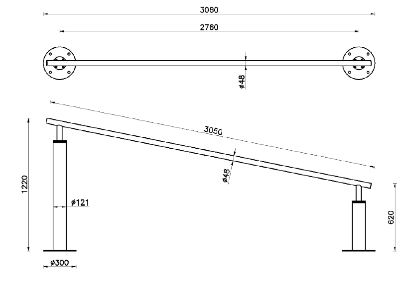 Fitness composto da una trave obliqua, da esterno, codice GHF011. Struttura composta da tubolari in acciaio zincato e verniciato. Completa di piastre basi decorative e supporto prolungato per il fissaggio tramite inghisaggio. Attrezzo per rafforzare tutti i muscoli e migliorare la forza delle gambe e di coordinamento.