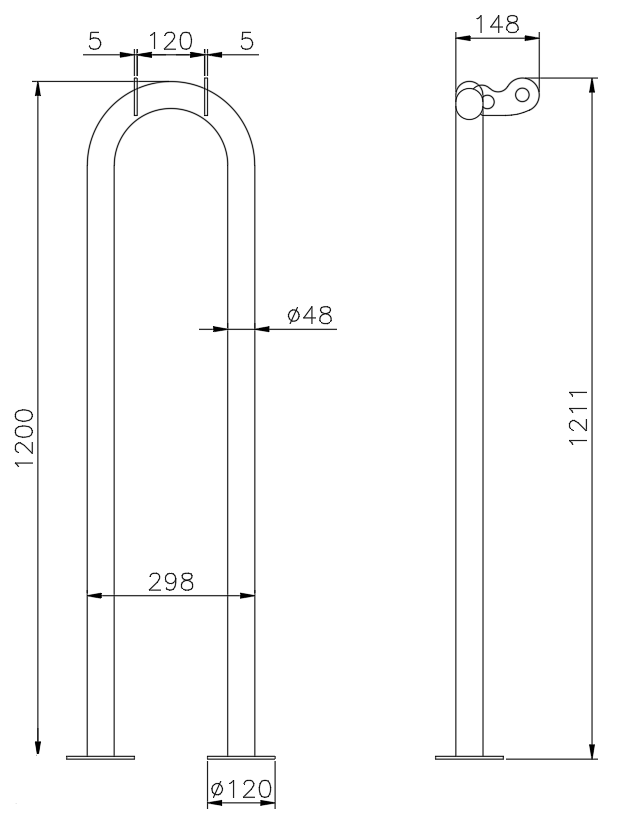 Portamonopattini Jambo a posto singolo, realizzato mediante piegatura a freddo di tubolare in acciaio. Nella parte superiore sono saldate due flange che fungono da appoggio per manubrio del monopattino. Oltre ai monopattini, può essere utilizzato anche per le bici. Il portamonopattini è fornito con piastra di base da tassellare. E’ realizzato in acciaio zincato e verniciato a polveri poliestere termoindurenti in varie colorazioni RAL.