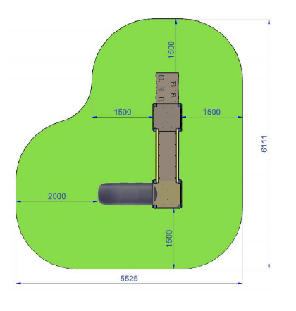Attrezzatura gioco rispondente alla EN 1176/08. Area di sicurezza: 550 x 400 cm. Questa linea è certificata per bambini da 1 a 12 anni.